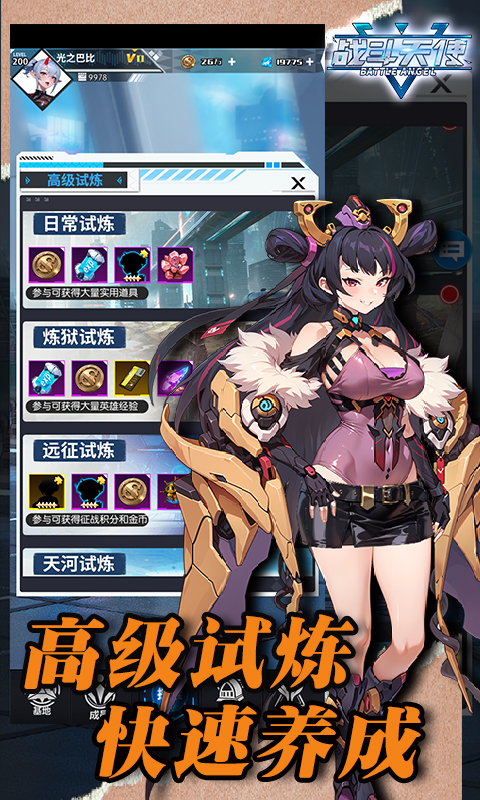 【战斗天使(0.1折爽玩版)】是一款竖版卡牌游戏,进入游戏您将与众多绝美女神机器人一起并肩作战,开启难忘的科幻世界冒险之旅!五大种族,四大职业,打造属于你的专属队伍;各种PVP、PVE等玩法,让体验根本停不下来。