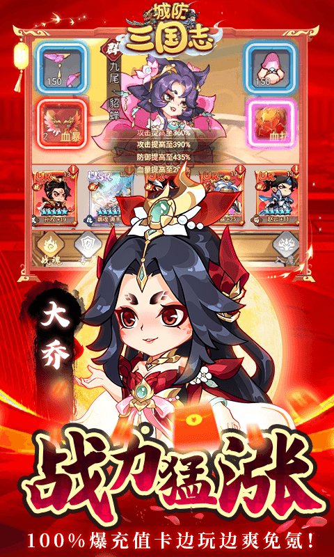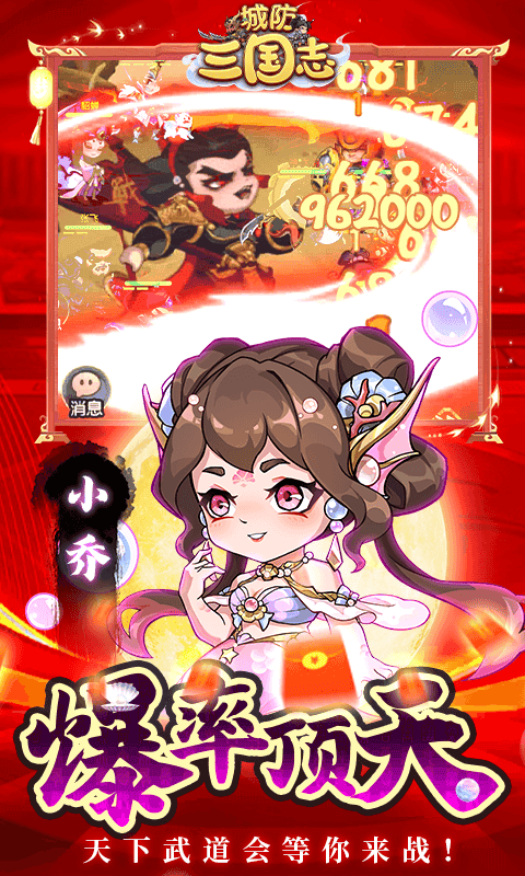 《城防三国志》是一款三国题材传统卡牌手游,游戏中的三国英雄们都以超可爱的 Q 版形象登场。无论是勇猛的吕布、睿智的诸葛亮,还是霸气的曹操,都变得萌态十足。每张卡牌都有独特的技能和属性,不同的英雄搭配会产生不同的战斗效果,合理安排阵容站位,打造属于自己的最强战队。游戏还提供了多种有趣的玩法,试炼塔中的各类玩法,巡山探宝、云游四海、通天塔挑战层层关卡,获取丰厚奖励;还有公会系统,与志同道合的玩家一起组建联盟,共同发展,参与公会战,争夺荣耀。一起征战三国,书写属于你的传奇故事!